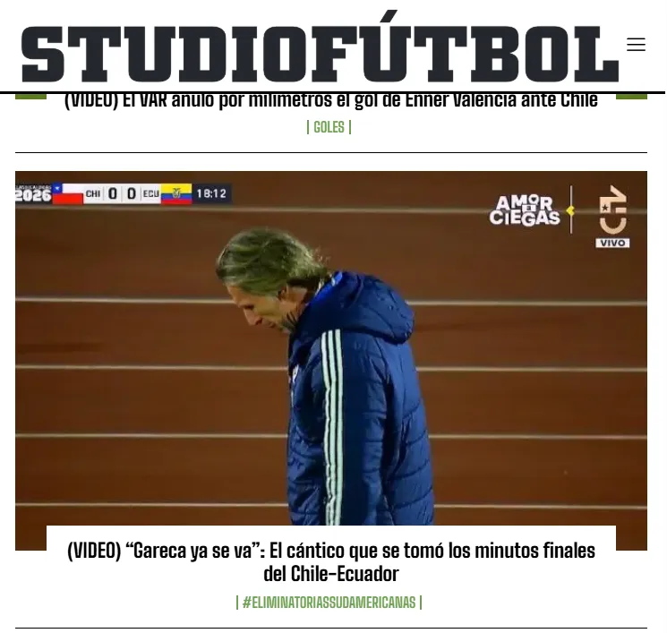 StudioFutbol en tanto hizo hincapié en el cántico que se escuchó en los minutos finales del partido. “Gareca ya se va”, junto a la reacción del DT también se tomaron las líneas del portal.