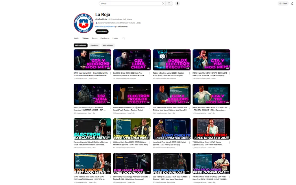 Resulta que desde hace un par de semanas, el canal oficial de La Roja en la plataforma digital de videos YouTube, que actualmente cuenta con más de 43 mil suscriptores, es víctima de un importante hackeo que puede provocar un daño importante en quienes los sigan.