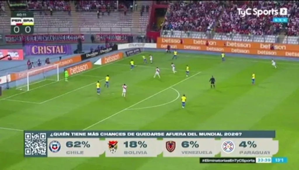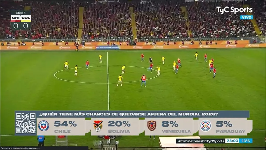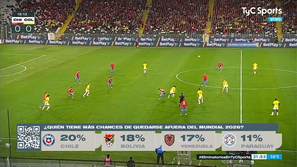 Y como la Roja está lejos de su mejor momento, en Argentina el canal TyC Sports no encontró nada mejor que realizar una encuesta en medio de la trasmisión de la segunda fecha: ¿quién tiene más chances de quedarse afuera del Mundial 2026?