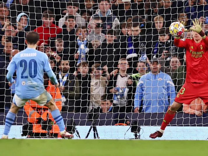 Bernardo Silva pone al Manchester City 2-0 ante Real Madrid... y eso que Courtois tuvo un atajadón.