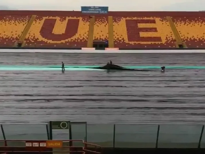 Protegen la cancha del estadio Santa Laura