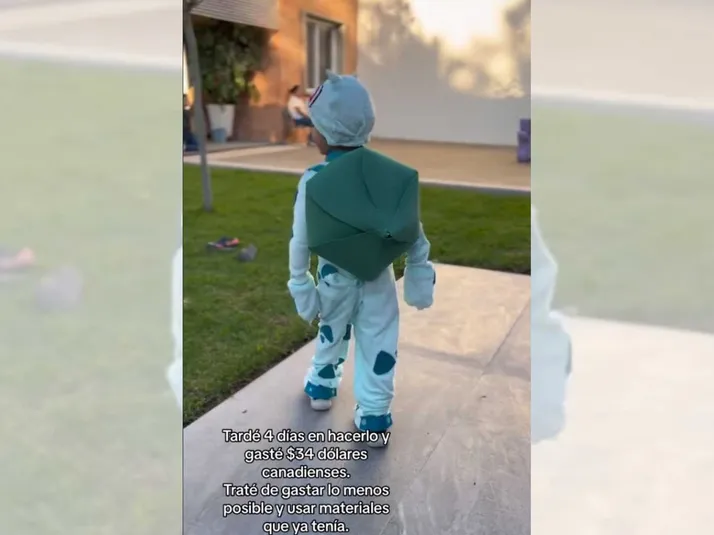 Mujer se vuelve viral tras fabricarle increíble disfraz de pókemon a su hijo en Halloween
