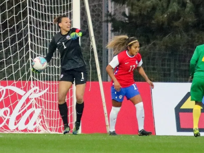 La defensa chilena batió la portería africana con un cabezazo a la entrada del área chica luego del centro venenoso de la Paloma López.