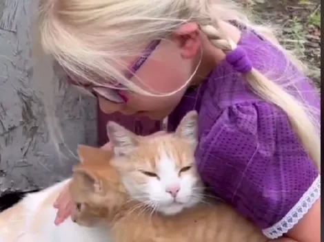 Viral video muestra una gata presentándole su gatito bebé a una niña