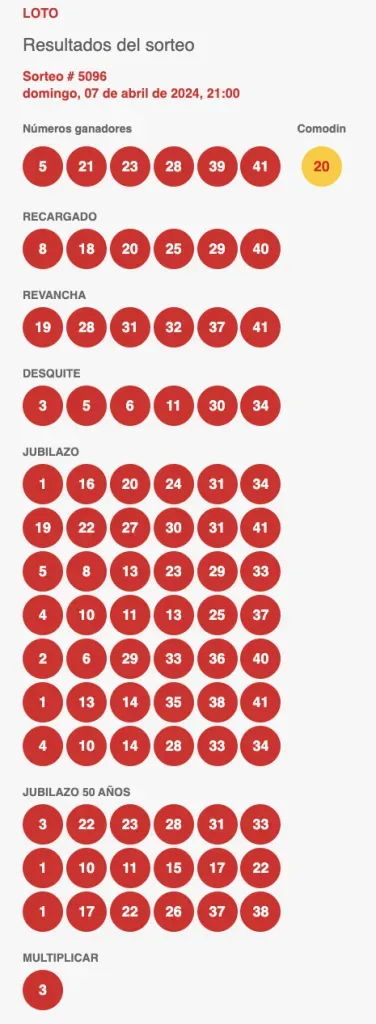 Resultados sorteo 5096 del Loto hoy 7 de abril: