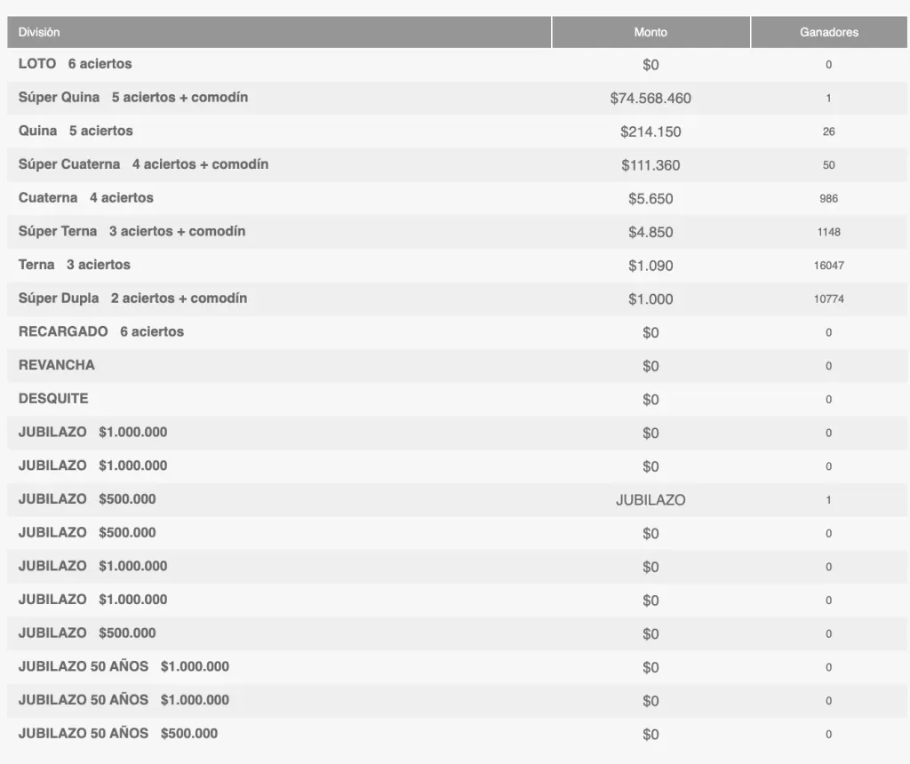Con esto, se asegura un pozo de más de 74 millones de pesos. Revisa a continuación los premios secundarios y el número de ganadores: