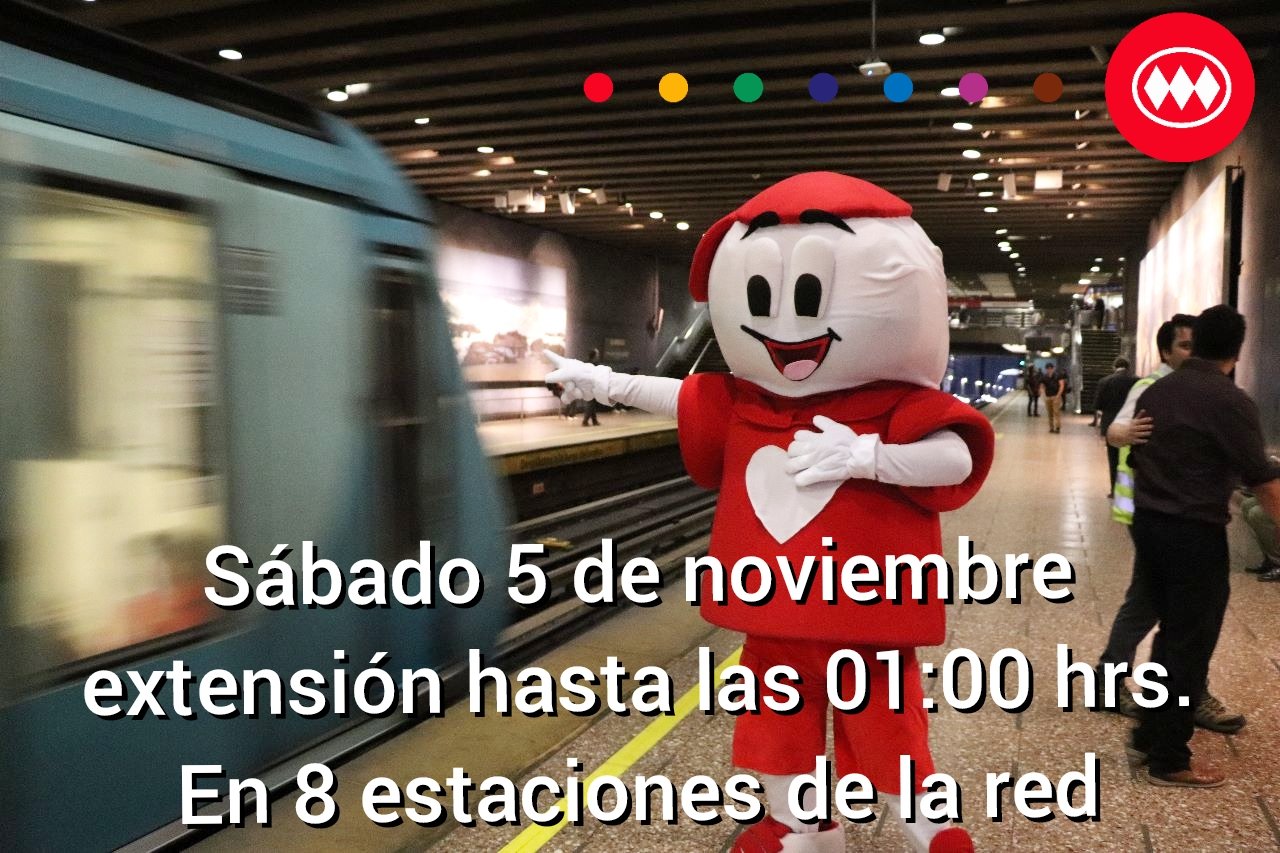 Este sábado 5 de noviembre 8 estaciones funcionarán hasta las 01:00 hrs. por la Teletón.