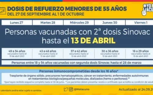 ¿Quiénes deben vacunarse con dosis de refuerzo entre el 27 y el 1 de octubre?