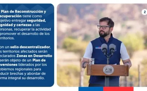 De acuerdo al Presidente Gabriel Boric, este programa, “busca entregar seguridad, dignidad y también esperanza a todas las comunidades afectadas. Para eso, este plan que le hemos entregado recién a las autoridades regionales, a los gobernadores en una reunión que tuvimos en la localidad de Ninhue, contiene 36 medidas distribuidas en cinco ejes necesarios para lograr una recuperación integral en todo el territorio afectado, con recursos frescos que no son reasignaciones de sacar de un bolsillo para poner en el otro, sino que son recursos que antes no estaban destinados para esto y ahora están destinados para esto”, señaló, agregando que “no les estamos sacando con una mano para ponerles en la otra”.