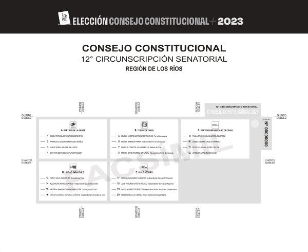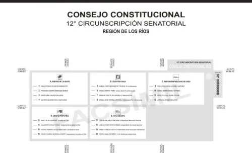 El domingo 7 de mayo se realizará la elección de los 50 representantes del Consejo Constitucional. El Servel ya dio a conocer las papeletas con los candidatos a lo largo de todo Chile. Revisa a continuación cómo es la de la Región de Los Ríos.