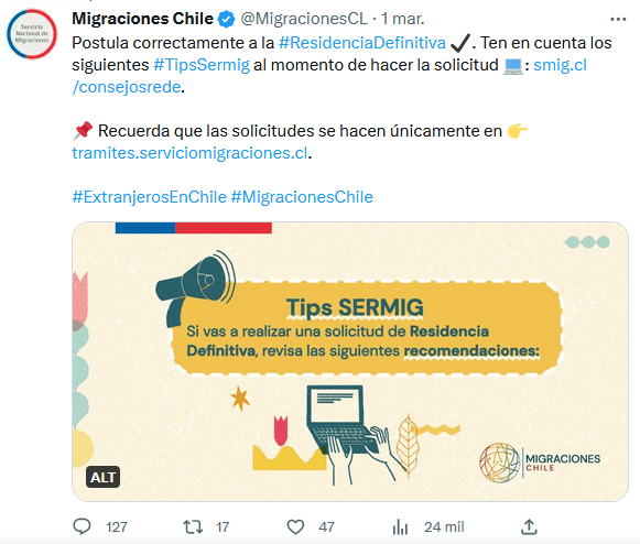 En este contexto, se torna importante conocer los trámites que se deben realizar, ya sean solicitud de visa o solicitud de residencia definitiva, de quienes ya llevan un tiempo residiendo en el país. Para ello, el Servicio Nacional de Migraciones (Sermig) dispone de una página web en donde se pueden realizar los trámites y consultar el estado de avance de los mismos.