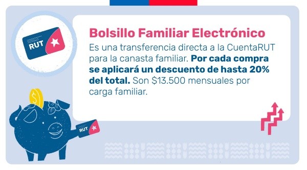 El Bolsillo Electrónico Familiar es un aporte económico que busca compensar el alza en el precio de los alimentos. El beneficio consta de un “bolsillo” dentro de la CuentaRUT de BancoEstado.