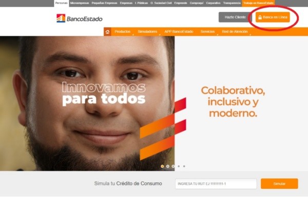 1. Primero debes dirigirte a BancoEstado.cl y hacer clic en “Banca en Línea”.