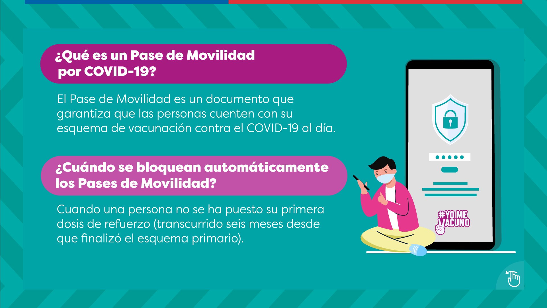 Es por esto que el contexto epidemiológico continúa con lasmedidas sanitarias vigentes, tales como elPase de Movilidad,documento que sigue activo en todas las fases del nuevo plan“Seguimos cuidándonos: Paso a Paso”.