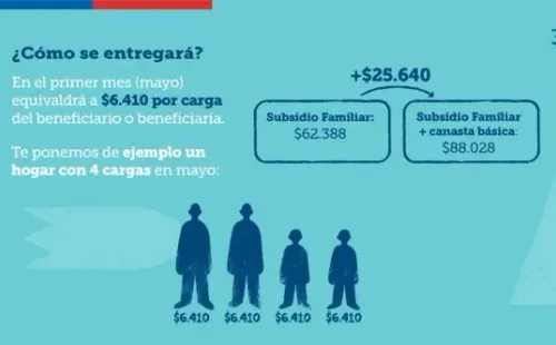 El pago se realizará por carga. Por ejemplo si un hogar con cuatro cargas recibe $62.388 por el Subsidio Único Familiar, con el Subsidio de la Canasta Básica recibirá $88.028.