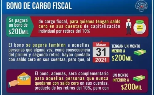 El Bono con Cargo Fiscal o Bono Complementario es el aporte surgido desde el Estado para paliar en parte los efectos de los retiros del 10% de las AFP.