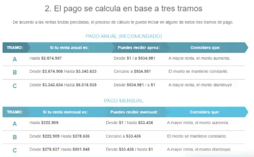 El monto varía según la renta bruta que reciba cada persona, a continuación podrás revisar los detalles de cada tramo.