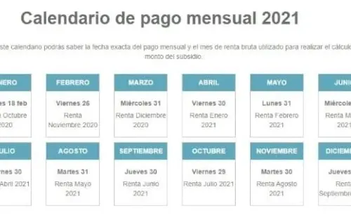 Por otro lado, si se elige la modalidad de pago mensual, las fechas de pago son las siguientes: