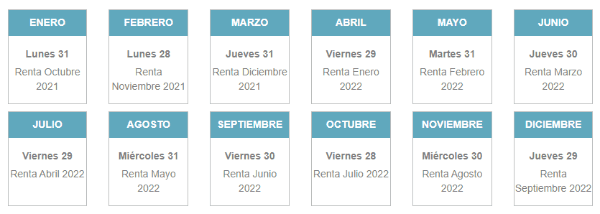 Las personas que tienen pago mensual lo reciben en la siguientes fechas:
