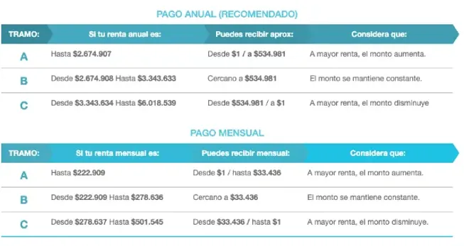 Una vez obtenidala renta bruta total del año anterior, deberás ver en qué tramo se ubica turenta bruta anual.