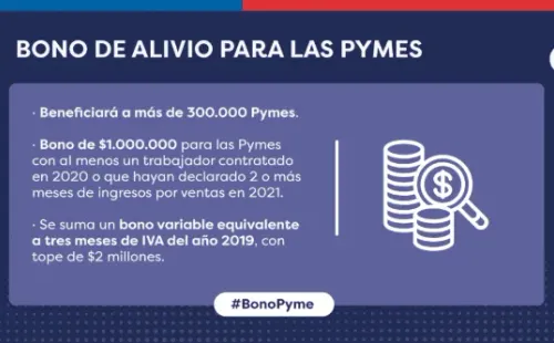 Y en concreto, el Bono de Alivio para Pymes entregará $1 millón de pesos a las empresas que cumplan con alguno de los dos requisitos: