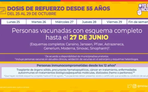 Desde los 12 años vacunados con esquema completo hasta el 10 de agosto.
