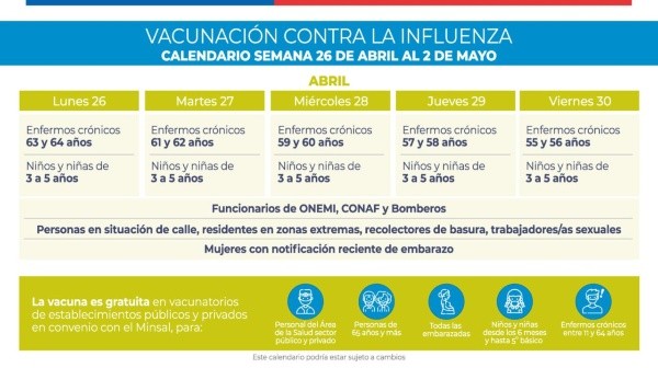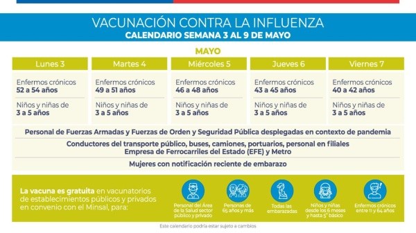 Durante esta semana se están inoculando a personas mayores de 65 años, niños y niñas de entre los seis meses y dos años; efecto capullo de lactantes prematuros menores de 6 meses, cuidadores intradomiciliarios de personas postradas y mujeres con notificación reciente de embarazo.