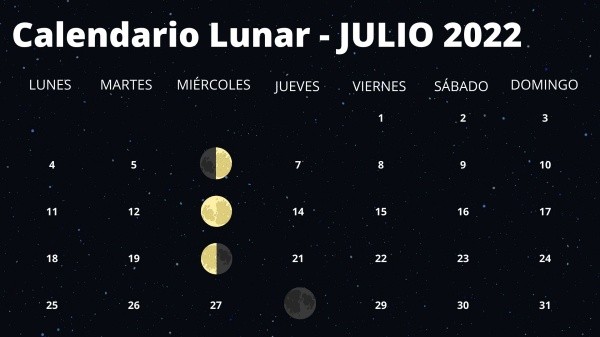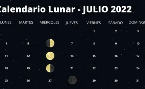 El calendario lunar de julio indica que las fases lunares ocurrirán en las siguientes fechas: