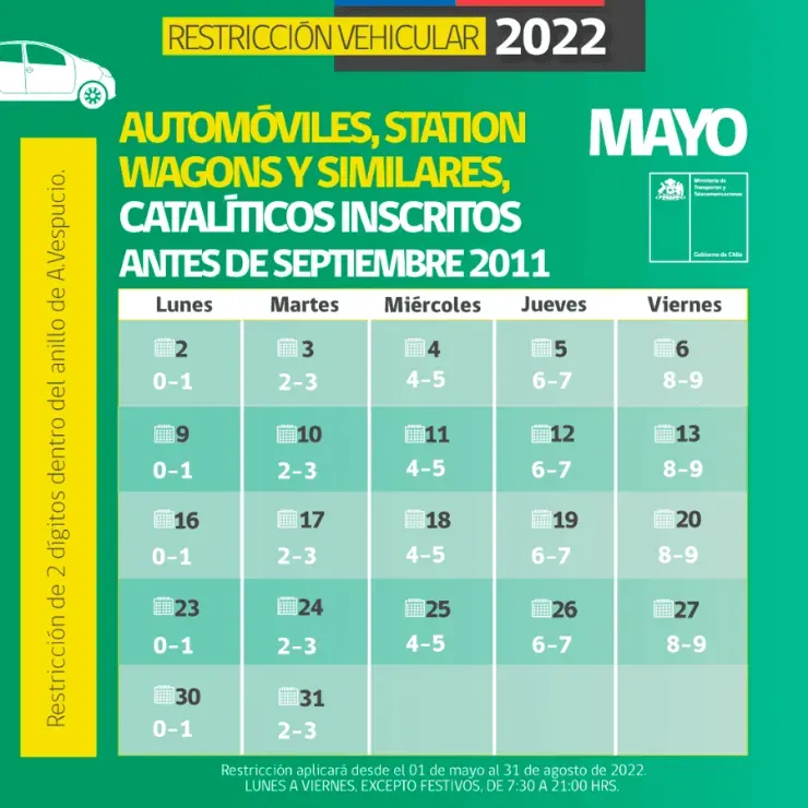 Recordemos que el objetivo de esta medida es disminuir los niveles de contaminación, que aumentan en esta época invernal debido a las malas condiciones de ventilación que tiene la cuenca de Santiago.