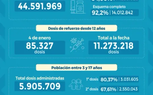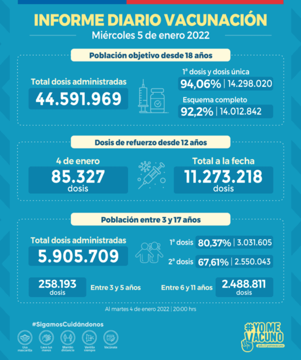 En contraparte, el proceso de vacunación sigue entregando buenas noticias, ya que el propio Ministro de Salud, Enrique Paris, confirmó la inoculación con cuarta dosis de la vacuna anticovid dentro de este mes de enero.