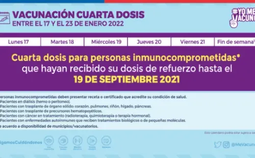 Desde el Minsal son enfáticos en llamar a las personas a vacunarse sobre todo las personas inmunocomprometidas que ya les corresponderá su cuarta dosis.