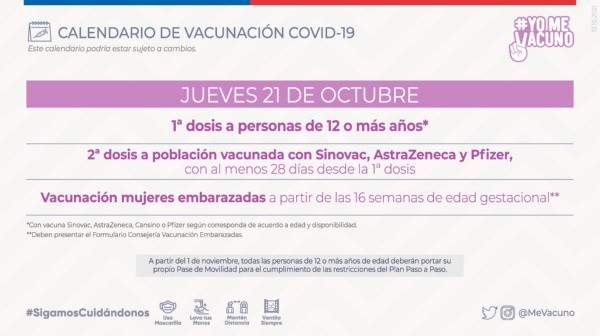 ¿Quiénes deben vacunarse este viernes 22 de octubre?