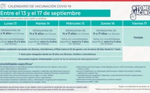 Desde el 13 al 16 de septiembre se inicia el proceso de vacunación en menores de los 6 a los 11 años que posean alguna comorbilidad específica acreditada.