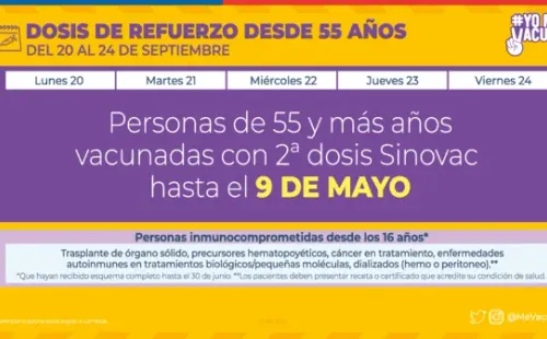 Con todo esto, el calendario de vacunación se retomará la próxima semana, ya que este viernes es feriado y el fin de semana se celebran las Fiestas Patrias.