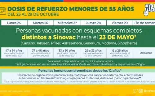 Personas de 16 a 28 años vacunados con esquema distinto a Sinovac (CanSino, Janssen, Pfizer, AstraZeneca, Generium, Moderna, Sinopharm) hasta el 23 de mayo.