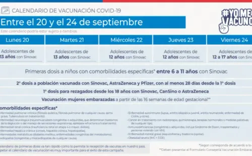 Según el calendario de vacunación, el lunes 20 de septiembre deben vacunarse las siguientes personas: