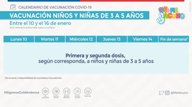 Revisa a continuación el calendario de vacunación de esta semana, correspondiente a los menores de 3 a 5 años, personas rezagadas tanto de primeras dosis y segunda dosis. Además de las dosis de refuerzo, y la cuarta dosis correspondiente a las personas inmunocomprometidas.