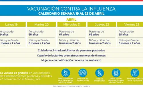 Para la semana del 19 al 23 de abril, deben ser inoculadas las personas entre 65 y 69 años e infantes entre los seis meses y los dos años.