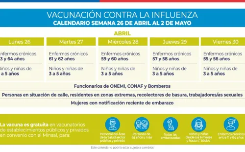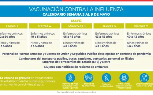 Hasta el próximo 5 de junio o hasta que se vacune el 85% de la población objetivo se extenderá la campaña de vacunación contra la influenza en Chile