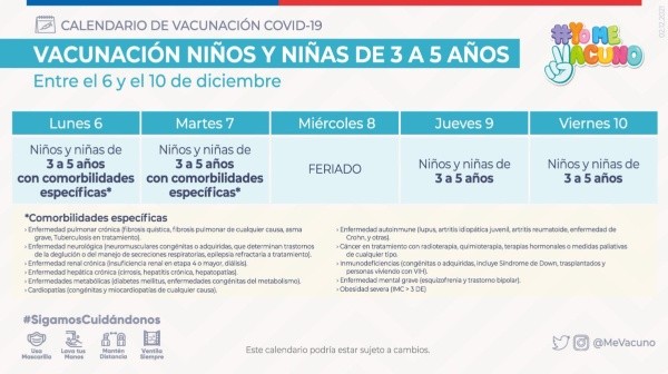 Como fue mencionado anteriormente, la campaña de vacunación se retoma mañana jueves 9 de diciembre, con la inoculación a niñas y niños desde los tres años en general, quienes se vacunarán con la dosis Coronavac, del laboratorio Sinovac.