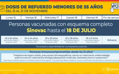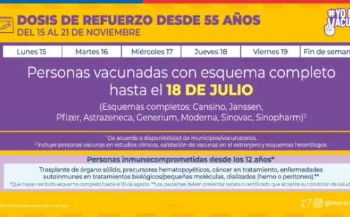 -Personas desde los 55 años en adelante que tengan su esquema completo hasta el 18 de julio.
