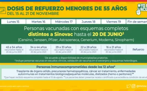 Además, se actualizó las exigencias para obtener elPase de Movilidad, donde las personas mayores de 45 años deberán tener la dosis de refuerzo para habilitar el documento.