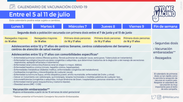 Según el calendario de vacunación, el viernes 9 de julio se vacunan las siguientes personas: