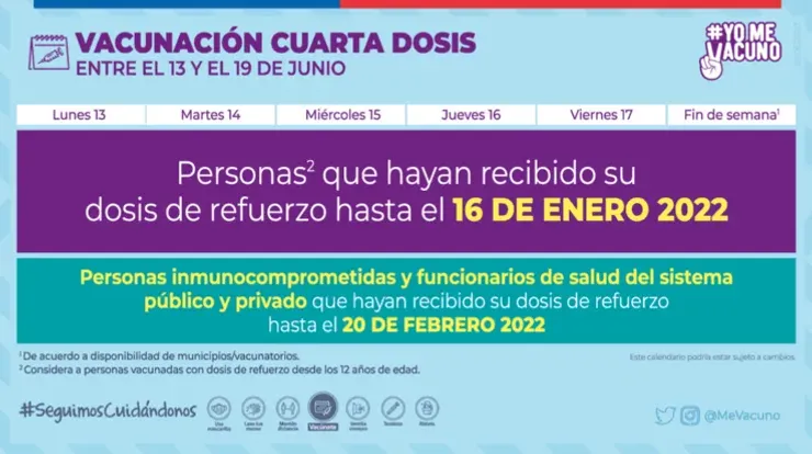 Las autoridades sanitarias anunciaron lasnuevasjornadas de inmunización,en donde se establece queestasemanacontinúalavacunación de lacuarta dosispara quienes hayan recibido latercera dosishasta el 16de enero de 2022.