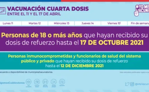 Bajo el mismo contexto,las autoridades sanitarias publicaron lasnuevas jornadas de inmunizaciónyesta semanacontinúalavacunación de lacuarta dosisen personas desde los 18o másañosque hayan recibido latercera dosis hasta el 17 de octubre de 2021.