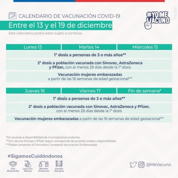 Las jornadas de vacunación son paraprimera y segunda dosis, junto a quienes deben obtener la dosis de refuerzo y se incluyen niños/asde 3 a 5 años: