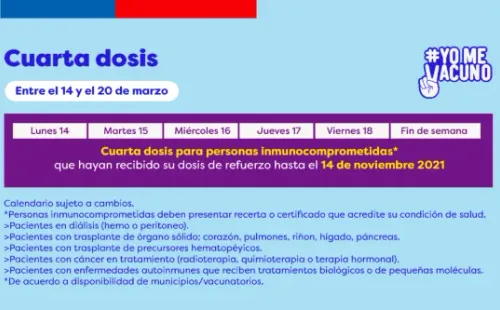 Cuarta Dosis | ¿Quiénes se pueden vacunar esta semana?