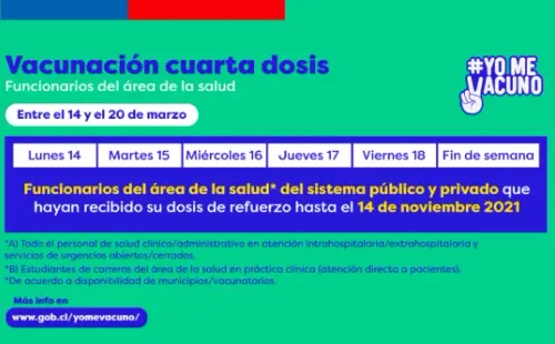 Bajo el mismo contexto el plan de vacunación continúa en Chile, esta semana las autoridades de salud actualizaron las jornadas de inoculación, para primera, segunda, tercera y cuarta dosis.