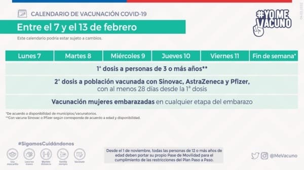 Calendario Minsal | ¿Quiénes se pueden vacunar este miércoles 9 de febrero?