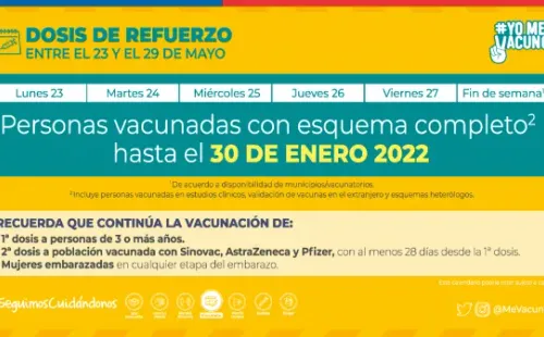 Según el calendario de vacunación, la próxima semana, desde el lunes 23 de mayo al domingo 29 de mayo, deben vacunarse las siguientes personas: